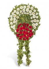 Beyaz Kırmızı Gerberalarla Cenaze Çelengi
