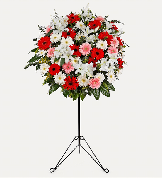 Ürün Detayları Gerbera Pembe : 10 AdetGerbera Beyaz : 15 AdetGerbera Kırmızı : 10 AdetBeyaz Lilyum : 18 Adet Renkli Gerbera ve Lilyumlardan Hazırlanmış Ferforje Aranjmanı "Ürün boyutu 150 cm dir"